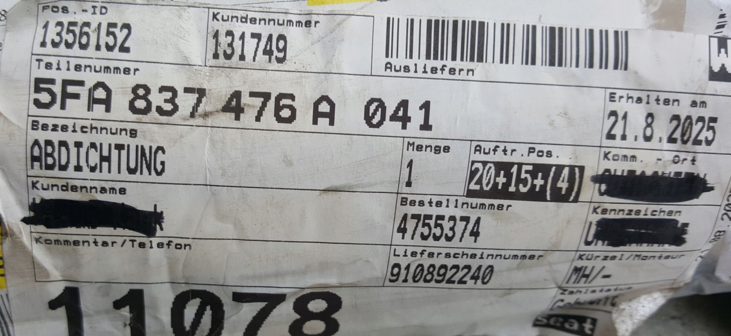 SEAT LEON IV 5FA LISTWA ZGARNIAJACA SZYBY PRAWY PRZÓD 5FA837476A, nowy oryginał, stan-foto(nowa), cena za 1 szt.